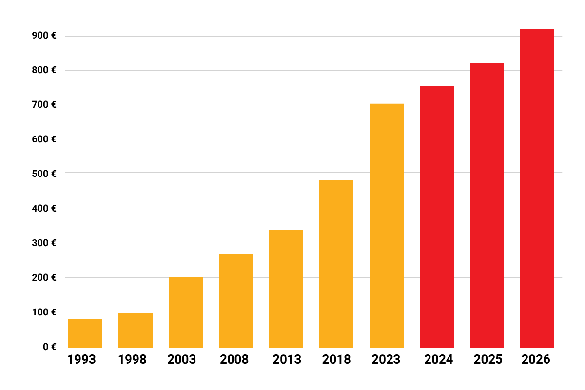 Vývoj výšky minimálnej mzdy v SR od roku 1993